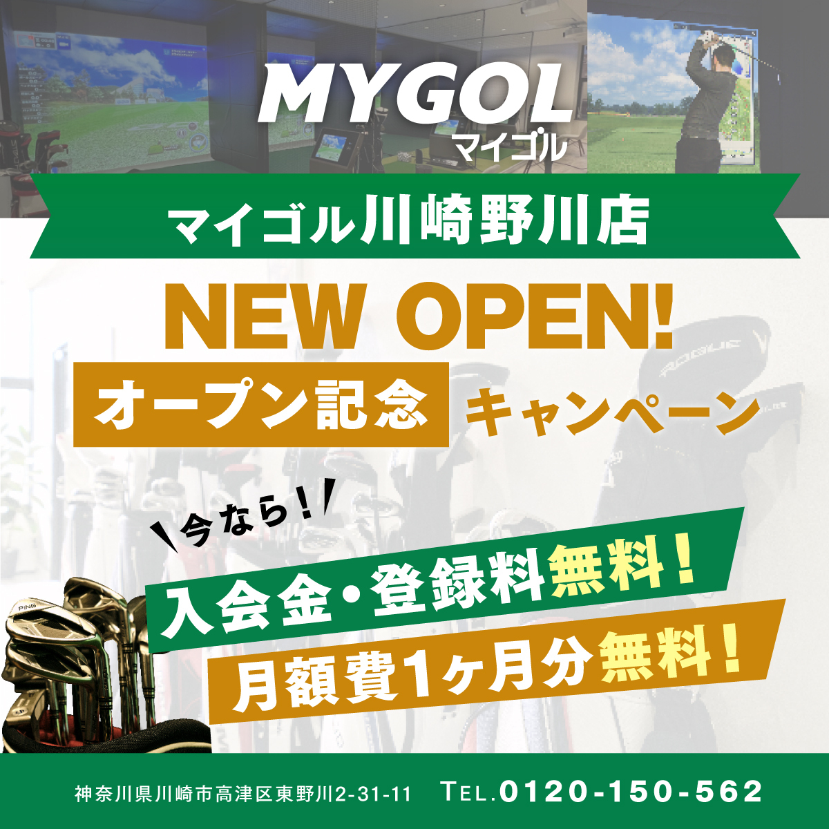 川崎市高津区東野川に位置する「マイゴル川崎野川店」は、2025年オープンの会員制インドアゴルフスタジオです。